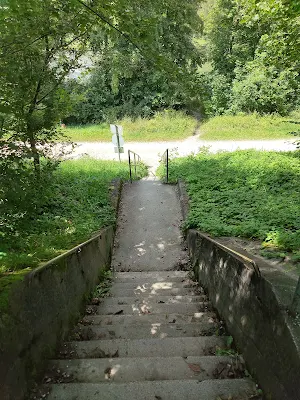 橋を渡り、階段を降りると、その先から水の流れる音が。